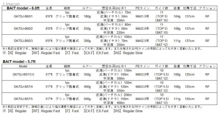 6.0ftからさらに短い5.7ftに設定することで、底物狙いや中深海ではより引き抵抗のあるヘビーウエイトジグを軽くリフトすることが可能であり、近海の青モノや遊泳力のあるターゲットに多様されるショートピッチジャークやハイスピードジャークに高次元に対応します。また、100mを超える深場の青モノ狙いや、100m未満であっても船を流していくドテラシチュエーションで圧倒的に使いやすいレングスとテーパーデザイン。