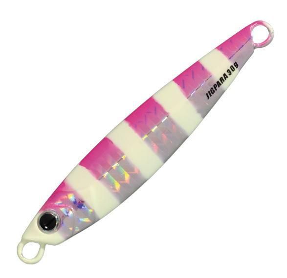 フィールド、ターゲット、アクションを選ばずあらゆる状況に対応するキング・オブ・スタンダードジグ、それが「JIGPARA」(ジグパラ)。ショアジギングにおいて飛距離が最大の武器となるのは言うまでもないだろう。その空気抵抗の小さいコンパクトシルエットは圧倒的な飛距離を生み出します。またハイピッチからスローまであらゆるジャークに対応する引き重り感の少なさと、喰わせのタイミングを誘発させやすいセンターバランスは使い手を選びません。その日の第1投目から最後の1投まで100%の信頼感でキャストできるド定番ジグの決定版です。