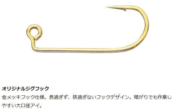 『ハネエビヘッド金鈎』は、水を切って左右へワイドにダートする三角ヘッドを搭載。フックは金メッキ仕様。軸は長過ぎず、フトコロも狭過ぎないほどよいデザイン。ライトゲームでふいにヒットする良型の魚にも対応する強靭さも併せ持ちます。使いやすさも重視して、暗がりでもリーダーを結びしやすい大口径アイを搭載。もちろん『ハネエビ』ワームと相互デザインにより、接続面が違和感なくつながり、ルアーとしての一体感も継承しています。